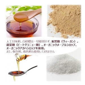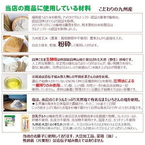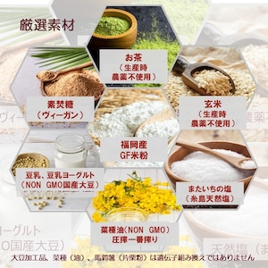 米粉(福岡産)、片栗粉、素焚糖(ヴィーガン)、なたね油(平田産業)、サイリウム(オオバコ)、生酵母(白神こだま酵母)、食塩(またいちの塩)